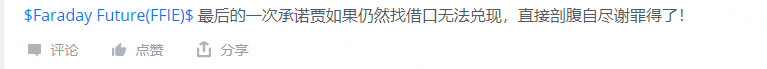 把 $Faraday Future(FFIE)$ 封为第一刺激股,谁同意谁反对。有文章发帖表示FFIE已经造车成功,下面评论有虎友专程打假: