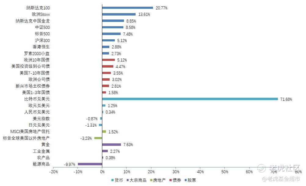 股票资产:主要股指基本都获得正收益,其中纳斯达克指数涨幅达20%,技术上进入牛市