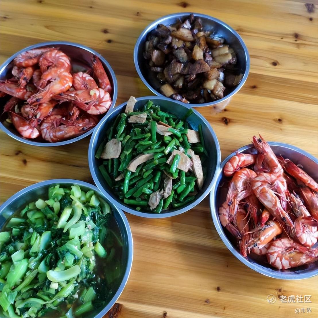 2022年春节和2023年春节,祝雅洁都是在养猪场过的。“去年热闹,吃得也好很多。今年春节过得很可怜,我们六七个人的年夜饭,就吃这个(上图)。”