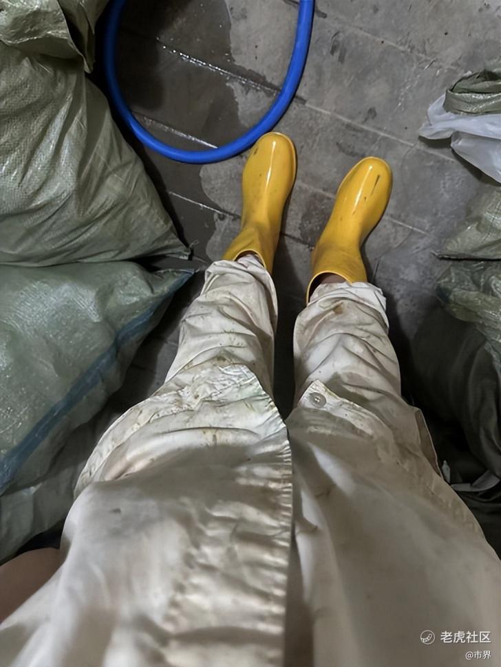 ▲(某天,要连夜把猪转走,晚上10点下班时,高如叶浑身都是猪粪。高如叶供图)