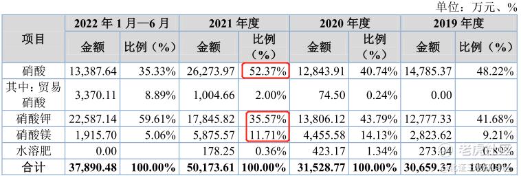 公司主要从事硝酸及其下游硝酸钾、硝酸镁、硝基水溶肥等产品,从营收结构上看,过往绝大部分营收都来自于硝酸和硝酸钾产品,两者历年占比都在80%以上。