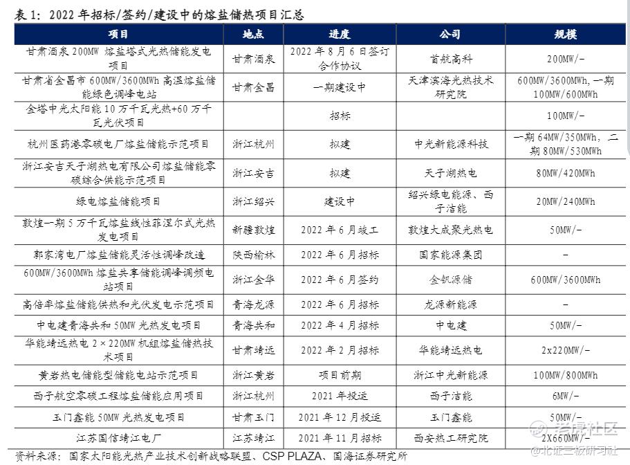 作为一种新的技术路线,目前国内已有相关案例投运,首航高科敦煌100MW项目熔盐储热时间可以达到11个小时。其他在招标和建设的项目还有甘肃金昌、金塔中光等,总体上看目前依旧处于一个较为早期的阶段,未来具体是否会大规模普及,非业内专家的话,判断难度较大。