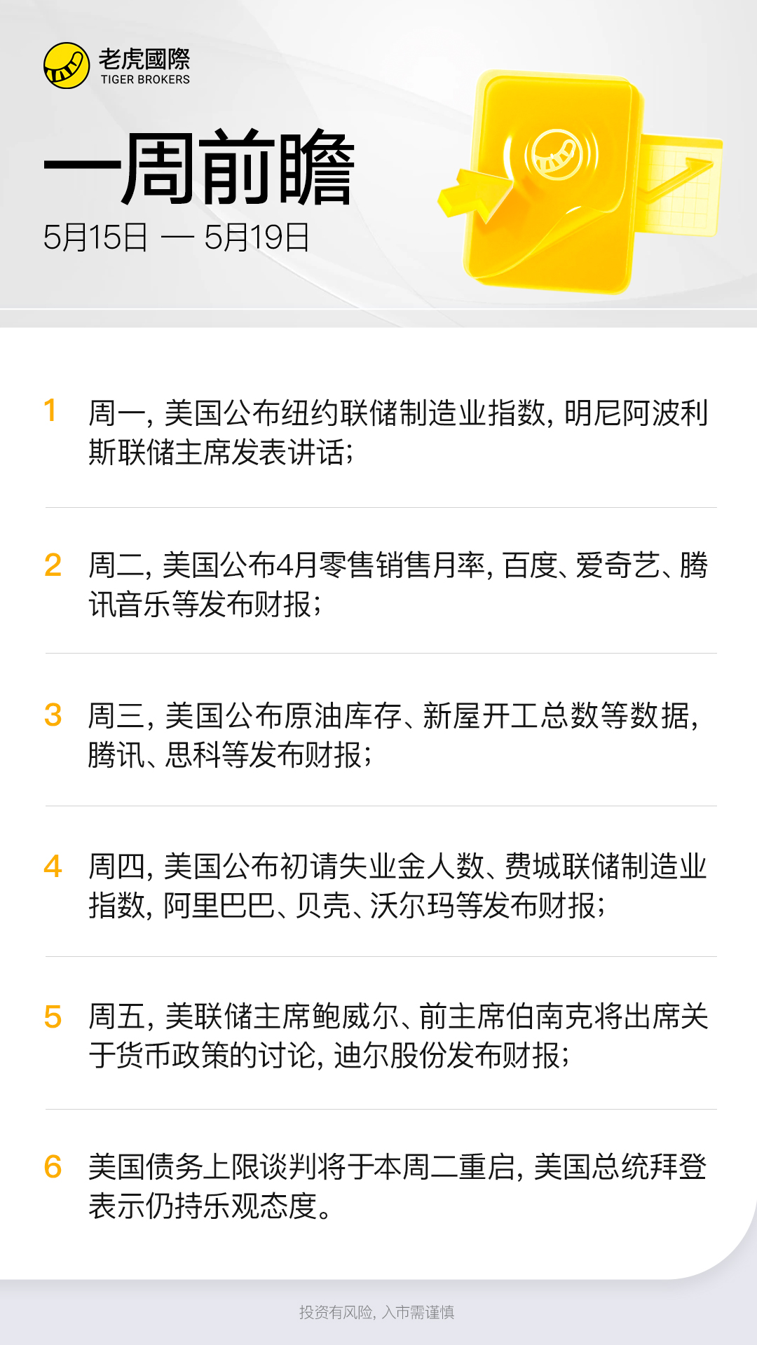 事件方面,5月15日,明尼阿波利斯联储主席卡什卡利将发表讲话,投资者需关注他的最新观点。