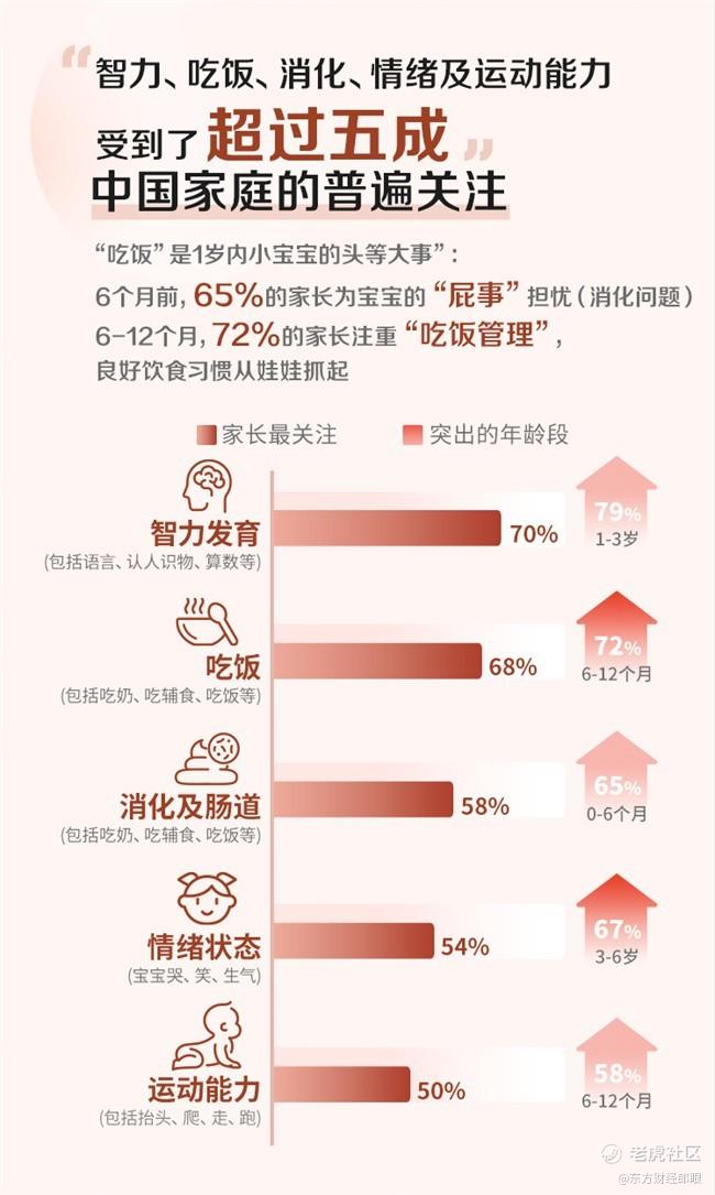 白皮书调研显示,智力发育、吃饭、消化及肠道问题、情绪状态及运动能力受到了超过五成中国家庭的普遍关注,其中“吃饭”是1岁内小宝宝的头等大事。6个月前,65%的家长为宝宝的“屁事”担忧(消化问题);6-12个月,72%的家长注重“吃饭管理”,良好饮食习惯从娃娃抓起。每个孩子都需要一把对的椅子,近半数家长更关注“成长椅”!其中,高收入家庭和一线城市对于成长椅的关注度更高,付费意愿更强。
