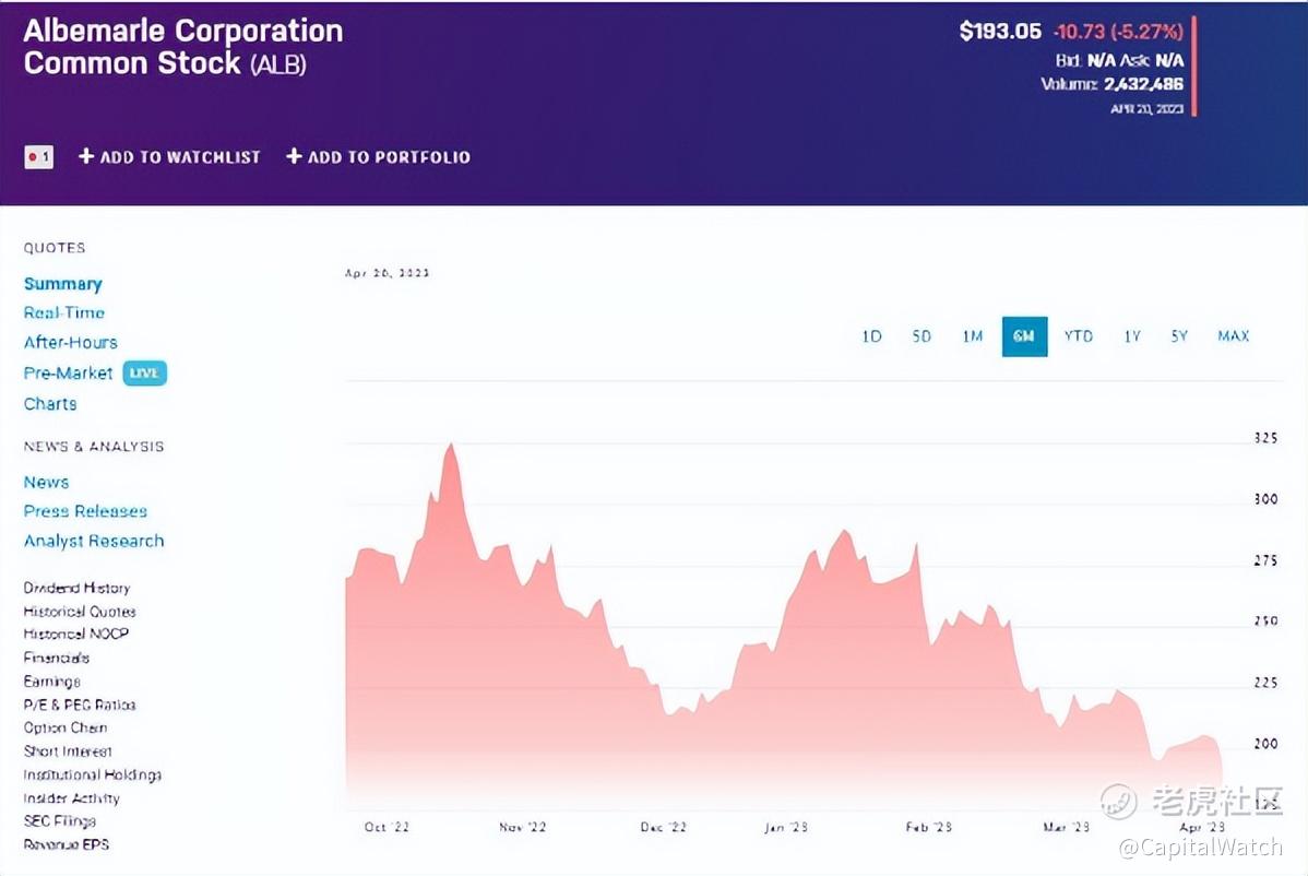 美国雅宝公司(Albemarle,NYSE:ALB)股价下跌5%左右,锂现货价格下跌2.5%左右。锂现货价格并不能完全准确地决定ALB的股价,但它肯定是一个合理的指引。这是因为采矿的运作方式。