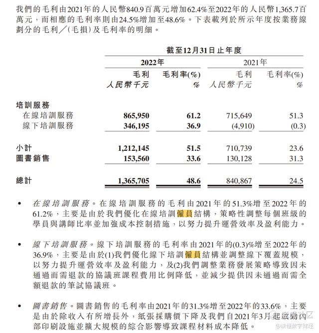 2022年粉笔的毛利率从24.5%大幅提升至48.6%,得益于毛利率的改善,2022年粉笔科技经调整净利润扭亏,从-8.22亿元大幅提升至1.91亿元。