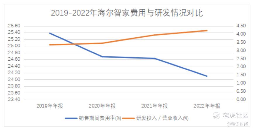 一季报显示,海尔智家2023Q1费率优化0.5pct。从历史数据来看,过去4年期间,海尔智家的总体销售费用率持续下降,从25.38%下降至24.1%,与此同时,研发费用占营收比率却不断攀升,由3.12%提升至3.9%。