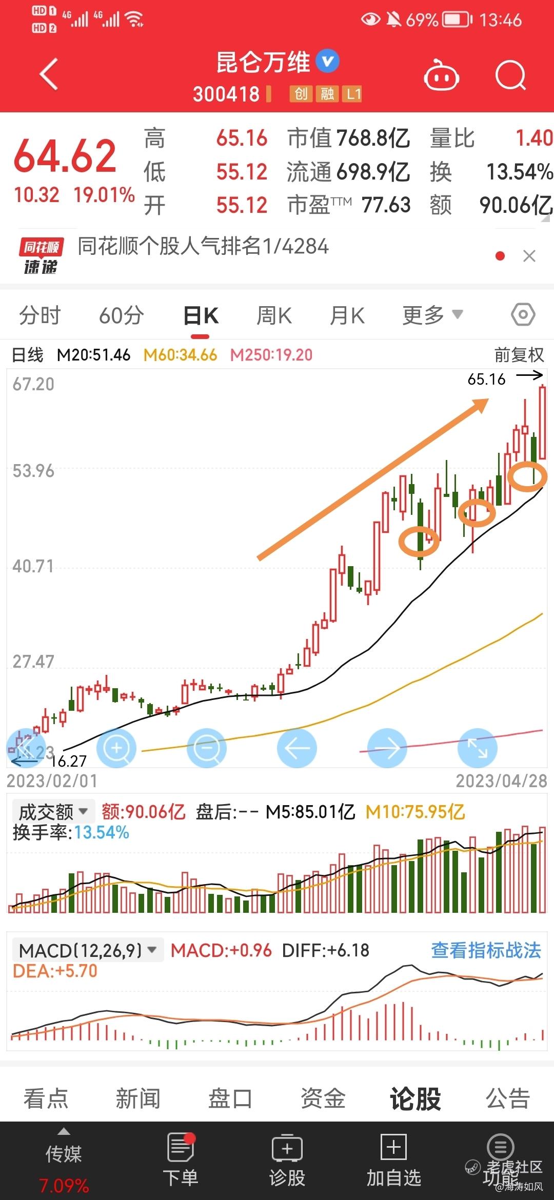 可以看到的,昆仑万维这波持续的新高,且回调不创新低,说明资金是在持续的拱。对比其他标的来说这点是最好的。