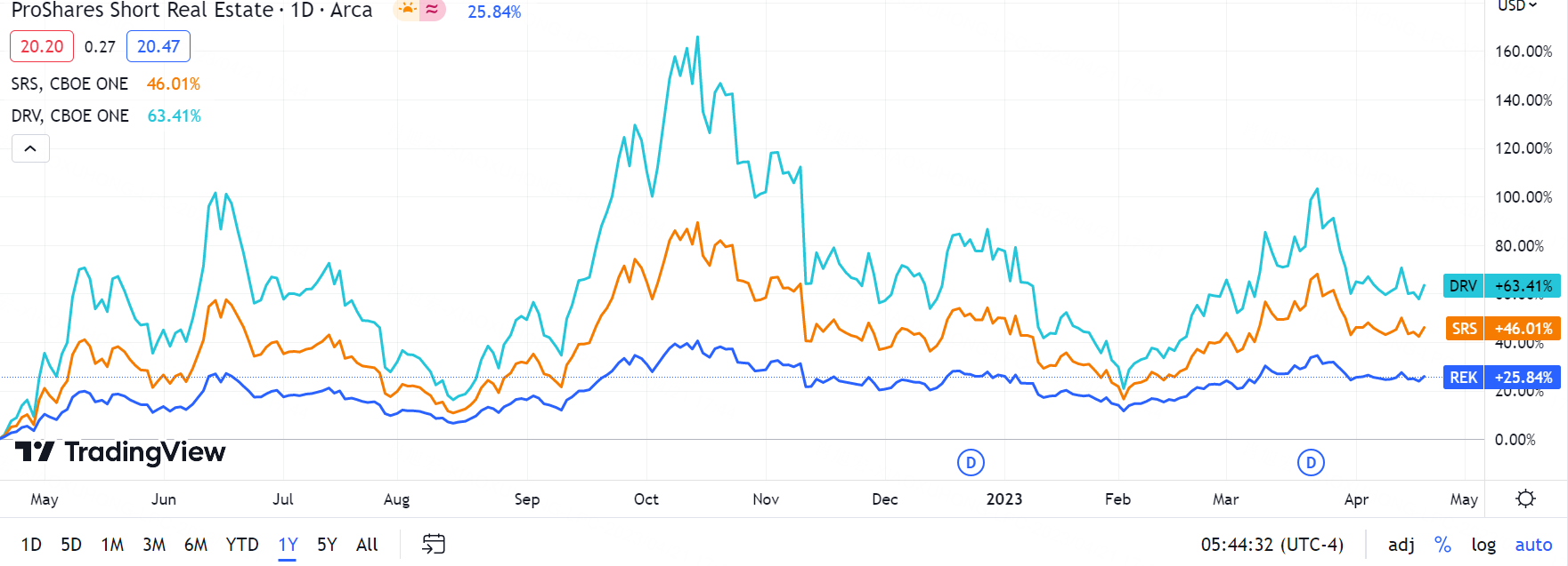 房地产投资信托基金将绝大部分收益作为定期股息支付。 如今,许多 REIT ETF 的年收益率都超过 9%。 这意味着您将被要求在做空 ETF 时向您借入股票的一方支付这 9% 的股息。 这是一个相当高的成本需要计入收益。