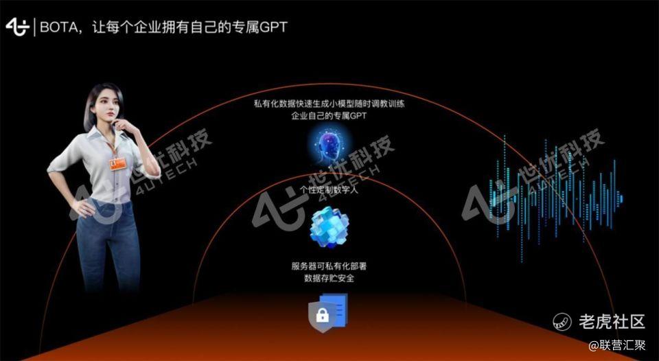 前面是对世优科技的简单介绍,下面我们就开始今天发布会的主题-世优BOTA。在当今数字化时代,AI技术正在飞速渗透到各行各业。ChatGPT的到来更是加速了整个进程,各行业都在思考如何利用AI已实现行业革新。在这个趋势下,我们也有了相对应的构想,确定方案可行性后,基于世优科技自研的快速训练小模型能力,与数字人形象结合,让AI从聊天窗口升级成人与“人”的直接交流,研发了这款AI数字人产品“世优BOTA”。我们定义它叫“AI数字人,企业的下一代员工”。