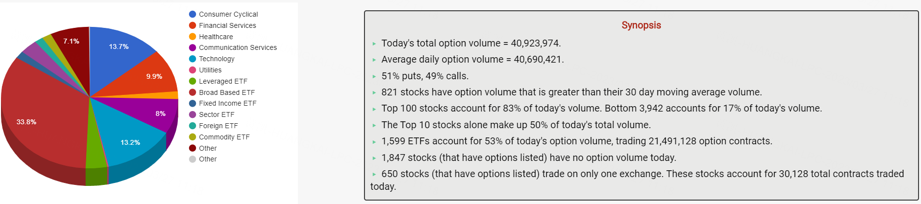 上周五,期权市场总成交量达40,923,974张合约,其中,看涨期权占比49%。