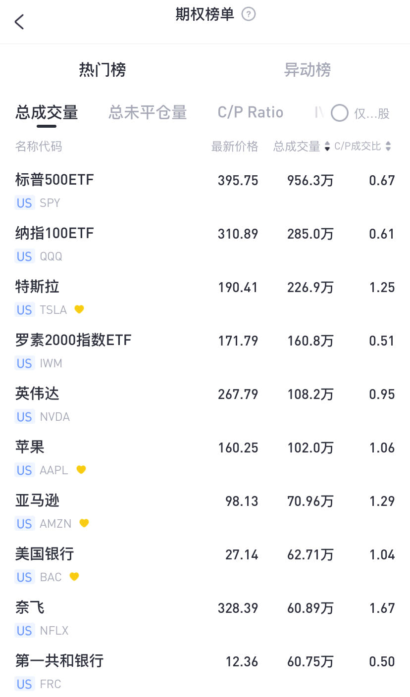 标普指数ETF-SPY期权成交956.3万张合约,其中,看跌期权占比69%。