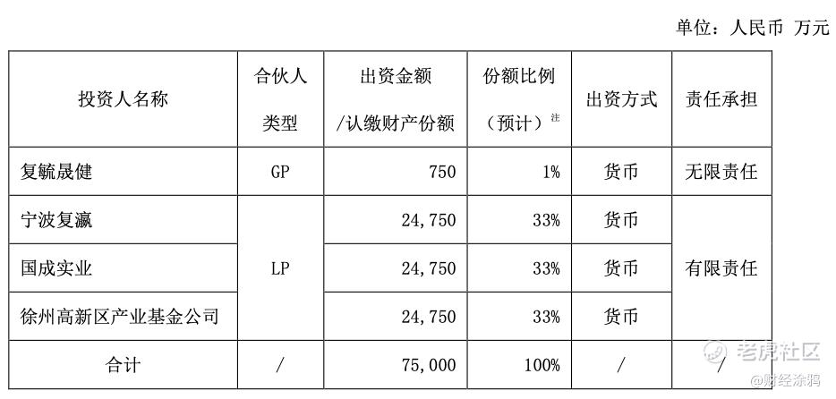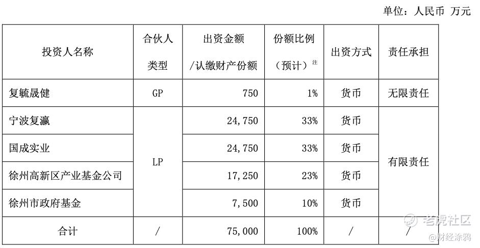 徐州创新器械基金出资情况(来源:复星医药公告)