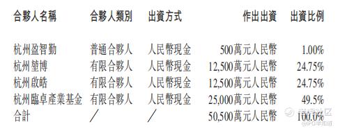 据此,杭州堃博同意认购合伙基金股本总额的约24.75%(人民币1.25亿元),而杭州启皓同意认购合伙基金股本总额的约24.75%(人民币1.25亿元)。