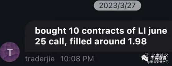 Li的期权3月28日$2左右的价格买入,于3月28日$2.65平仓,30%的盈利