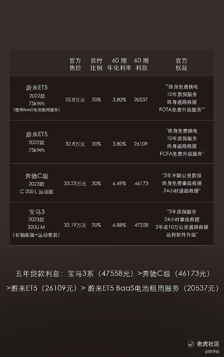 去年底特斯拉掀起的汽车行业价格战烽火不停,近期湖北等省市的政企补贴更是引起热议,降价幅度之大让购车者直呼“小心脏”受不了!不知道大家有没有算过一笔账,汽车贷款除了首付,还要重点关注后续还贷的利息。以蔚来ET5为例,两年期零利率贷款,购车最低首付仅需车款1/5,而购买同级别的BBA车型,两年内要多付近万元的利息,五年期的还贷利息差距甚至高达2万。不算不知道,一算吓一跳,这钱都可以给女友买个小香了!所以说,蔚来的金融方案是真的香!