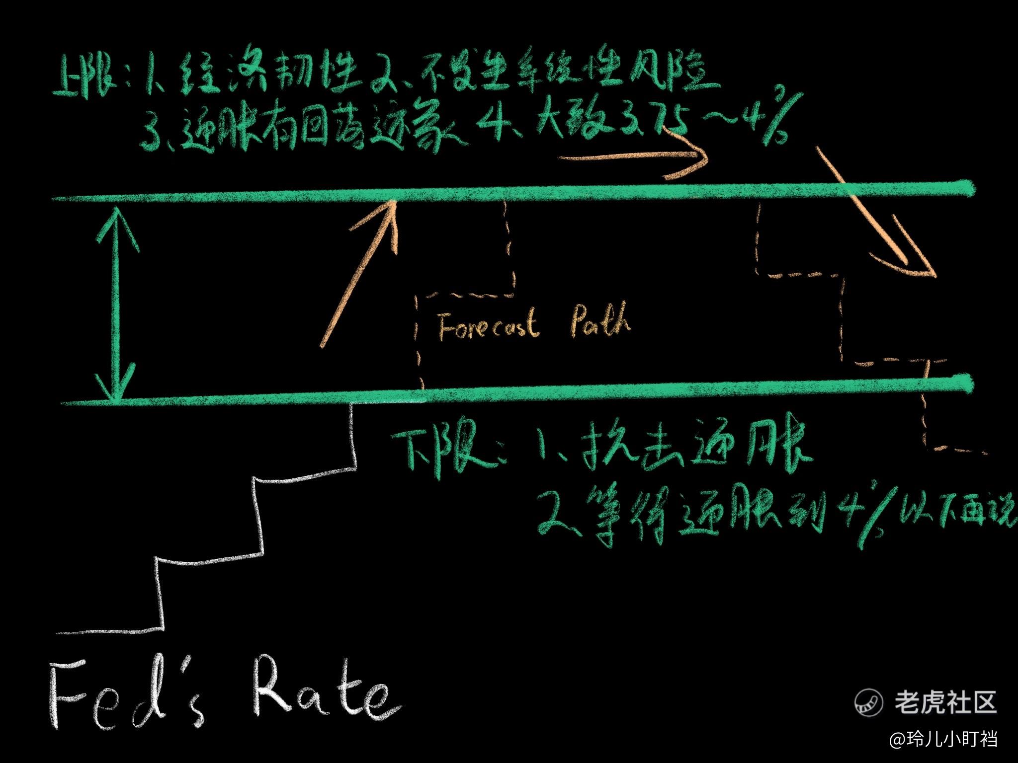 另一个有意思的点是,Powell之前明确说了“不提供前瞻指引”,但实际上今天却明说了:达到终端利率前,会保持一段时间较高的利率,直到看到了通胀明确性下行的证据。