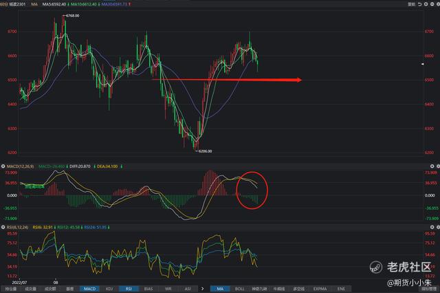 纸浆01合约小时线级别来看,布林带开口缩小运行发展,实体自上轨运行至下轨附近,尾盘收取一根长下影线的小阴柱,下方支撑6520附近。均线方面,蜡烛实体承压5日均线下行,纸浆价格不断走低,午盘纸浆价格跌破月线支撑。MACD指标死叉递增放量,绿色动能柱持续下行,还没有给出企稳反弹的信号。RSI指标三线走势向下,市场空方势力稍强。晚间若纸浆价格持续下跌,注意下方支撑6500的表现;若晚间纸浆价格反弹,则逢高空为主。