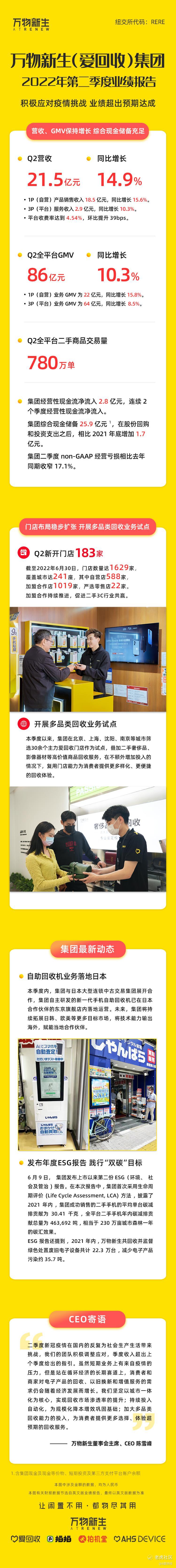 一图看懂万物新生 2022Q2 财报:营收 21.5 亿元,业绩超预期达成。