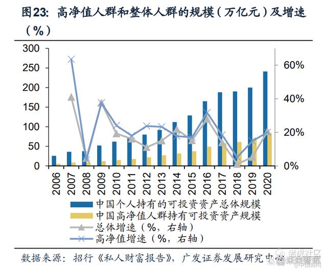 ②富裕客户:富裕人群具备一定的资产规模,对资产配置及投顾类服务有需求,但 相对高净值客户议价能力较低。可通过拓展金融服务和丰富产品体系获客,并增强 投顾能力及产品收益率水平,在保持产品竞争力优秀的基础上吸引大众富裕客户加 入并维持保有。③高净值客户:财富聚集更明显,资产增速更快,是内生增长的有效保障;获客上通 过高级投顾引入、内生增长及投行等业务部门协同等方式获取;客户需求更加复杂 多元,有较强的业务协同需求,同时由于资产规模较高,具备更高的议价能力。
