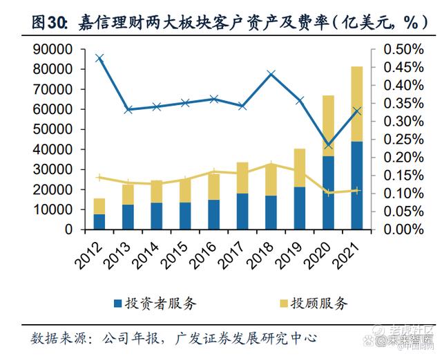 ①大众客群:客户基数大、客均价较低,适用于低成本获客方式如线上低佣金拓展、 用户口碑传播。以早期的嘉信理财为例,嘉信主要定位于大众零售客群,用户数量 增长主要由低收费但高品质服务驱动。美国佣金自由化后,嘉信下调所有客户佣金 费率,吸引众多规模小、价格敏感高的独立型大众零售投资者;随着互联网不断普 及,嘉信拓展线上化经营,由折扣经纪商转型第三方综合理财平台,获得大量年轻 客户。随着大众客户资产规模提升以及客户服务需求多样化,适合推出基金、养老 金、投资顾问等服务,提升投顾服务附加值。