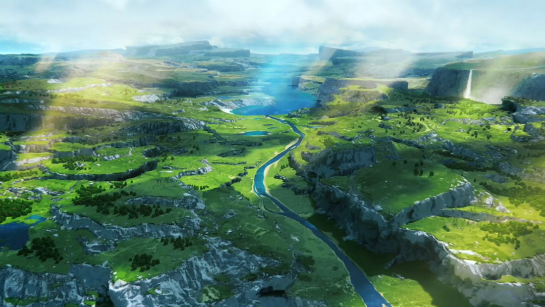 官方还公布了一段三分半钟的概念宣传片,开头展现了郁郁葱葱的树林,玩家在游戏中最早遇见的向导角色派蒙从林中现身。此后,“蒙德”地区标志性的草原、峡谷与湖泊都逐一亮相,在鸟瞰镜头中呈现出磅礴的气势。宣传片末尾,主角兄妹二人睁开眼睛,字幕宣告“长期项目启动”。