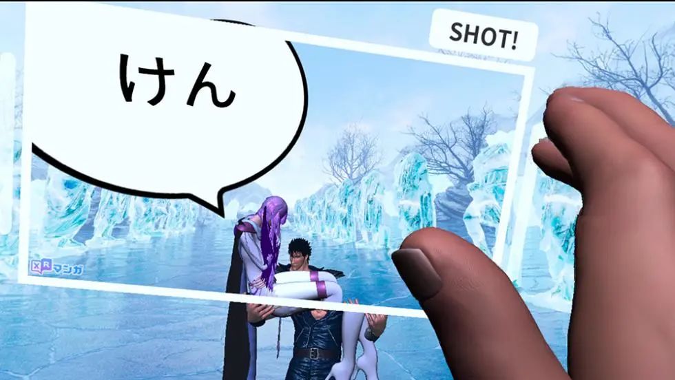 《XR Manga:新北斗神拳》还为用户提供了丰富的交互体验。在游戏过程中,《北斗神拳》的主角Kenshiro和Yuria的数字形态将会与玩家一同进行冒险,玩家可以自由更改数字人物的姿势、大小、背景等参数。系统中配备的相机模式还可以让玩家基于虚拟场景制作原创的四格漫画,并能随时上传到Twitter进行分享。为增强趣味性,在阅读系统中还置入了迷你游戏“I am Kenshiro”,通过手部追踪功能,玩家能以第一视角感受释放技能和拳法粉碎障碍物的体验。