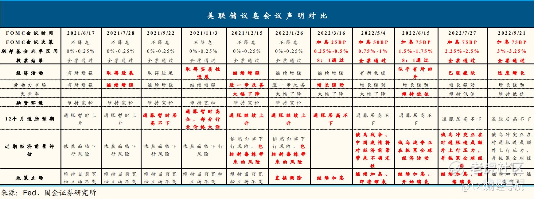 9月议息声明中,美联储加息75bp,重申将让通胀降至目标。