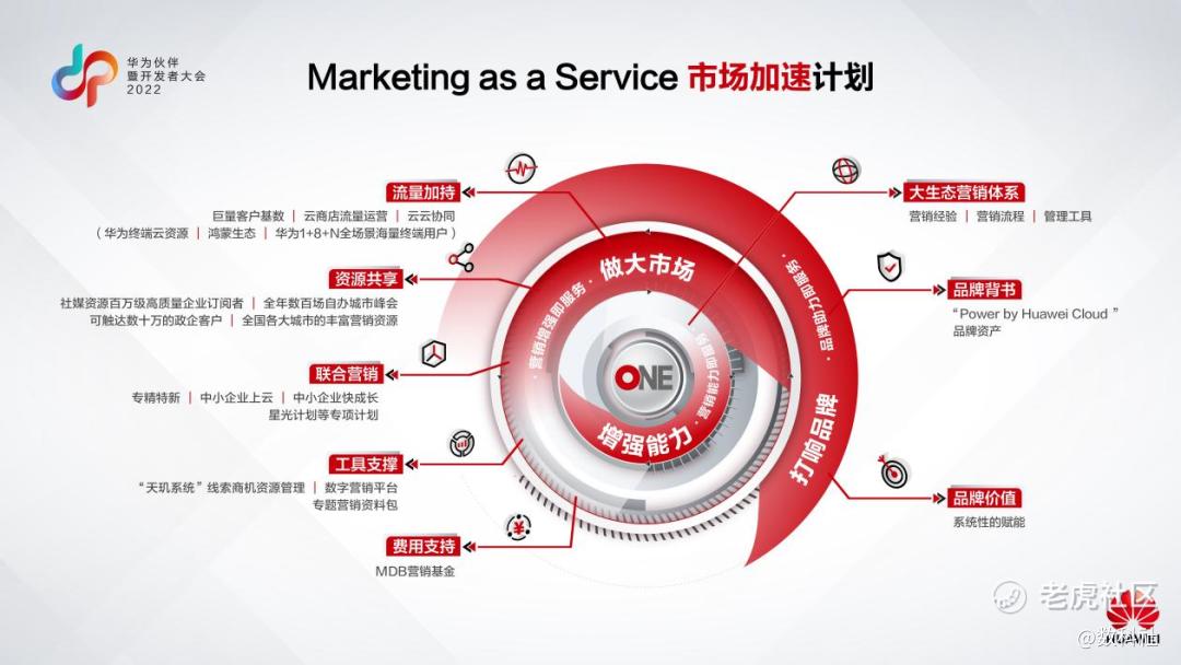 在做大市场方面,华为云提供Marketing as a Service,通过“营销能力即服务”、“营销增强即服务”和“品牌助力即服务”等能力加持,助力伙伴加速商机获取,更好地服务客户。
