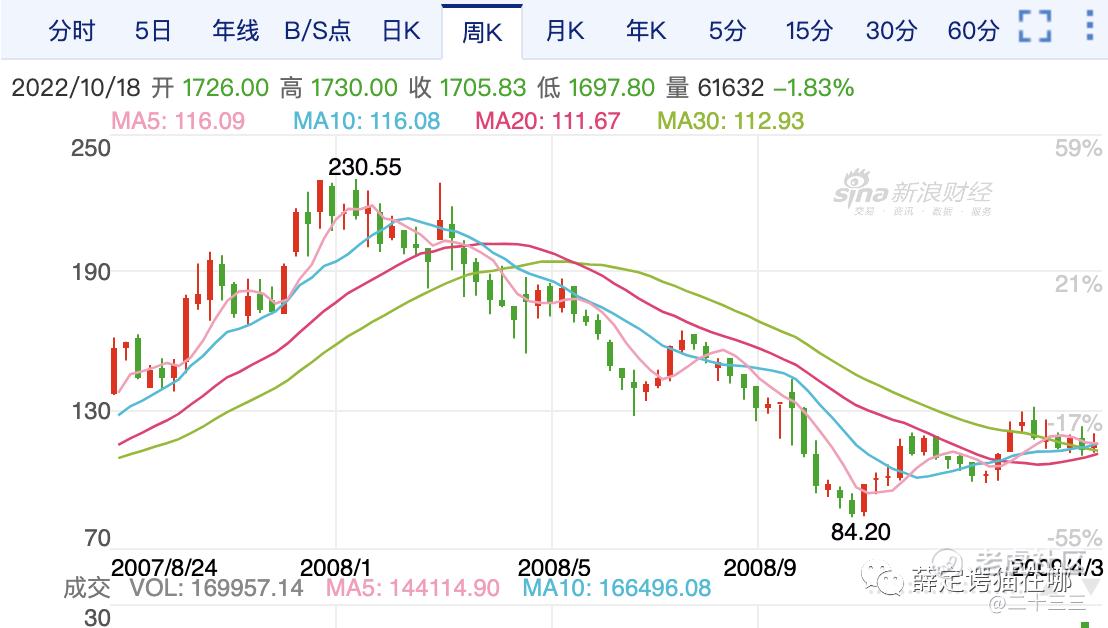 港股腾讯有点2008年茅台的意思啊!茅台那一年也是大跌了不少,现在看看腾讯,跟那时候茅台有点像,不过茅台花了快8年才重新站稳高点。腾讯重回700多不知道要多少年啊!或许以后再也不会回来了。