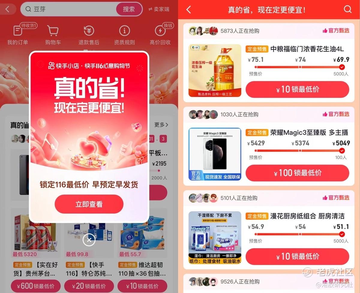 此次116大促,快手以“真的补 真的省”为主题,重点打造了“真的省”补贴专区,首次推出“万人砍价团”预售等新的活动玩法。此外,快手还通过“66购物金”、“手选之子”等活动向用户发放购物满减券。