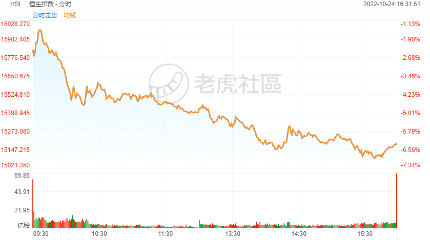 今天的香港市场波动极大,恒生指数跌约6.5%,恒生科技指数跌超10%。香港市场进一步出现了流动性的问题。