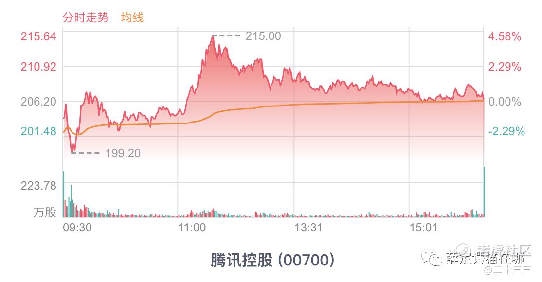 腾讯今早一度跌破200,简直亮瞎我的双眼,去年年初如果告诉我,我宁愿相信中国足球世界杯夺冠,也不愿意相信企鹅能跌破200。