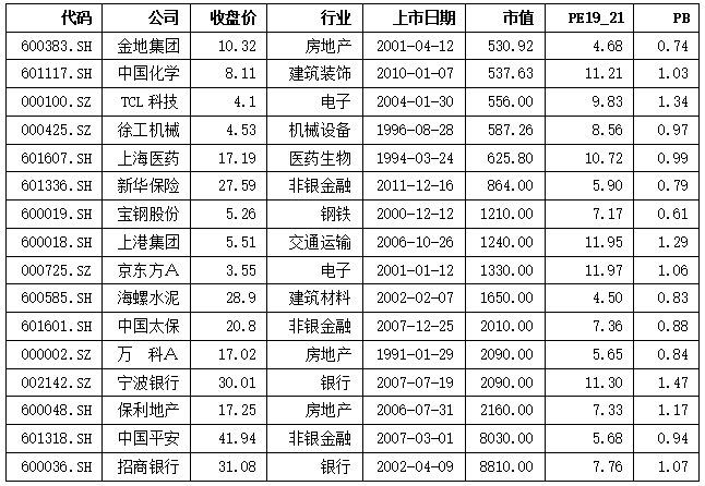 用这些标准选出的股票,基本上就是A股“打折”的大盘,基本不会有明星股。利用A股2022年10月14日的收盘数据,筛选出的公司如表1所示: