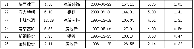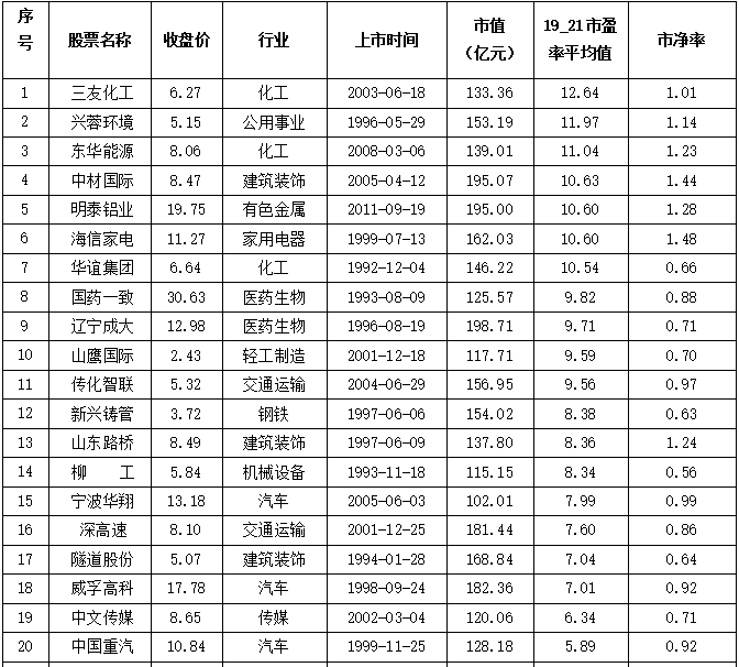 最后来说一下小盘股。这里的小盘股是指公司市值在100亿到200亿之间的股票。所以这个规模也不是那么小。选出的股票见表3。