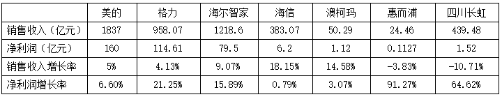 表4 中国家电行业领军企业2022年上半年业绩对比