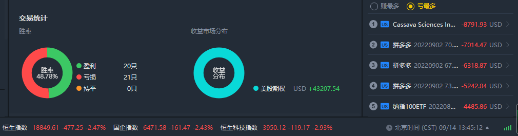 前段时间执著于拼多多,全仓押注一个胜率不高的期权策略,由于满仓还导致期权一条腿被迫平仓,导致期权策略失效,遭受了重大损失,账号几乎归零。当正真好的机会出现的时候,却无能为力,错失好多挣钱的机会,错过了蔚来、苹果、大盘的大涨,虽然昨晚一次又回调了,但是在这些过程中都是可以挣钱的好机会,如果周一做个大盘的跨式期权,也是有钱挣得。