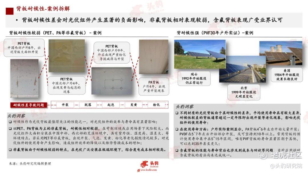 背板耐候性差会对光伏组件产生显著的负面影响,非氟背板相对表现较弱,含氟背板表现广受业界认可。