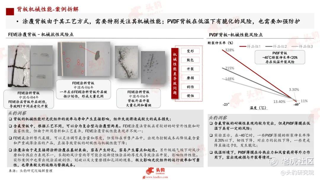 涂覆背板由于其工艺方式,需要特别关注其机械性能;PVDF背板在低温下有脆化的风险,也需要加强防护。