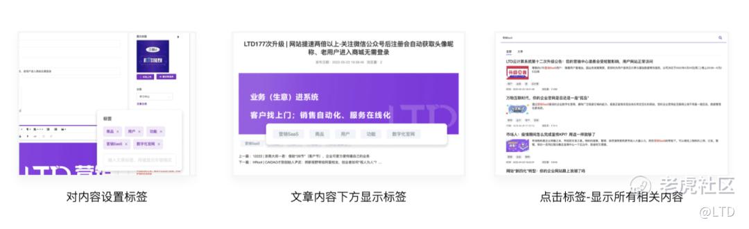 也可以利用内容分类、标签、关联内容等功能让客户更快地找到他感兴趣的信息与内容,进⾏内容流的构建,实现更好的内容营销体验。