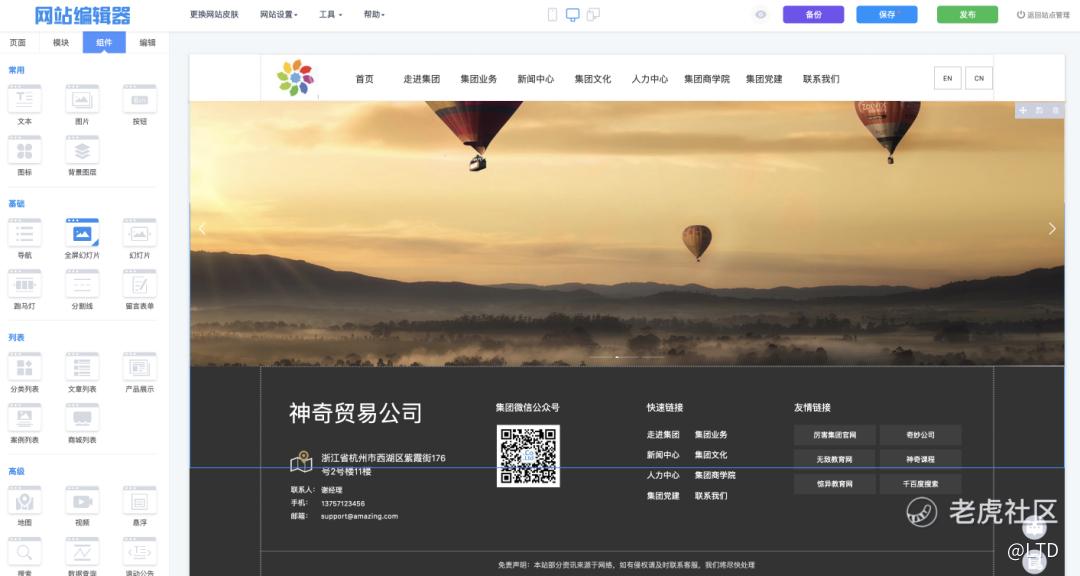 通过可视化网站编辑器,低门槛搭建网站页面。