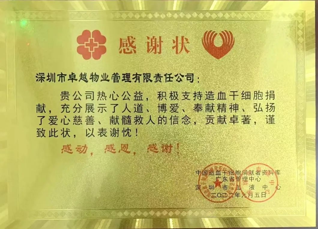卓越的爱心传统代代相传,除了每年参与红色行动无偿献血活动,在公益之心的号召下,越来越多的员工自发参与慈善活动。每年在无偿献血的同时,都有不少人登记成为捐献造血干细胞的志愿者。前不久,就有一个好消息传来,来自华南FM大区腾讯大厦项目的员工刘义,他的造血干细胞与一位血液病患者配型成功,今年9月5日他完成了造血干细胞的捐献,成为深圳市年度捐献造血干细胞100人中的光荣一员,助力深圳成为全国首个年度捐献造血干细胞破百的城市。