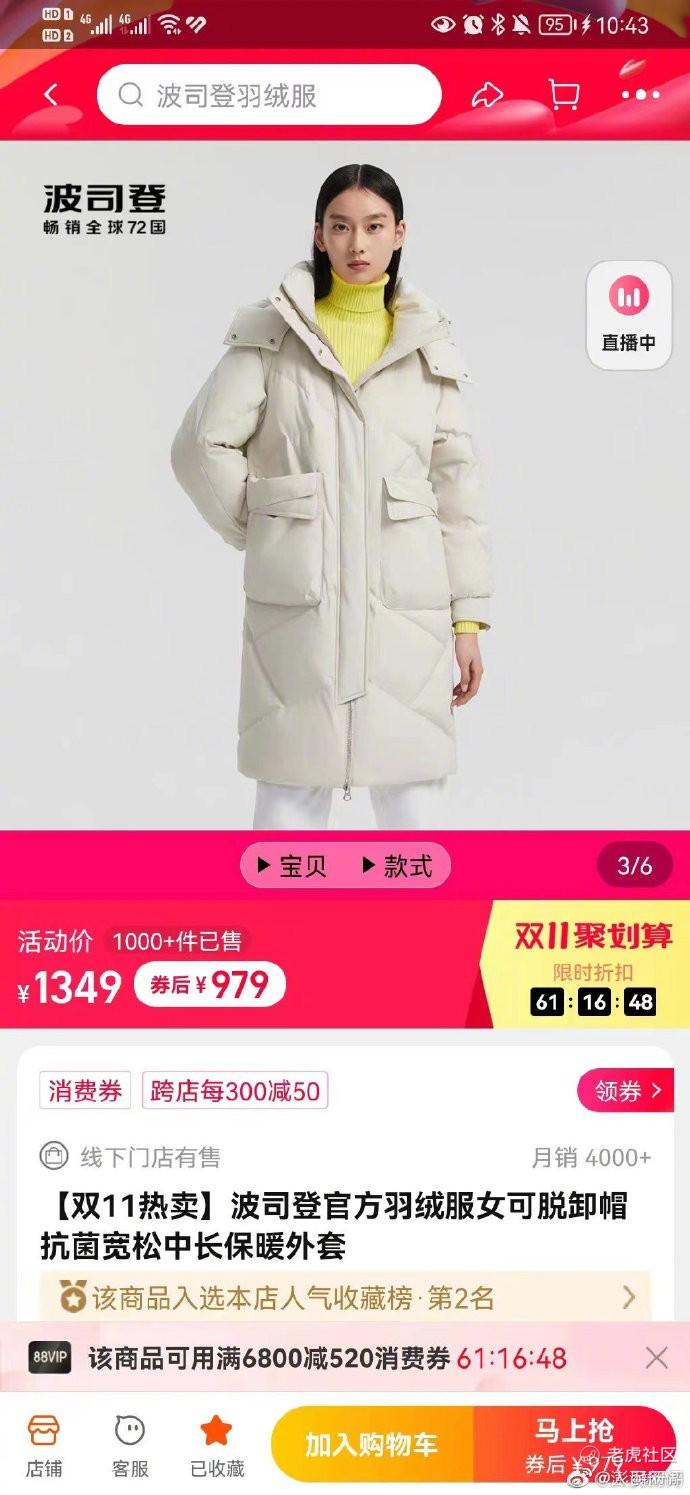 上海市民李女士称,双十一预售期间,她原计划在波司登旗舰店购买一件羽绒服,该羽绒服9月份价格是券后979.28元,没想到在双十一其价格提至1349元,券后价格仍为979元,仅比平时便宜0.28元。