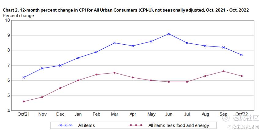 11月10日晚,大家了除了双十一疯狂买买买之外,全球瞩目的美国10月通胀数据也正式揭晓:美国10月未季调CPI年率 7.7%,预期8%,前值8.20%。美国10月未季调核心CPI(去除能源与食品)年率 6.3%,预期6.50%,前值6.60%。