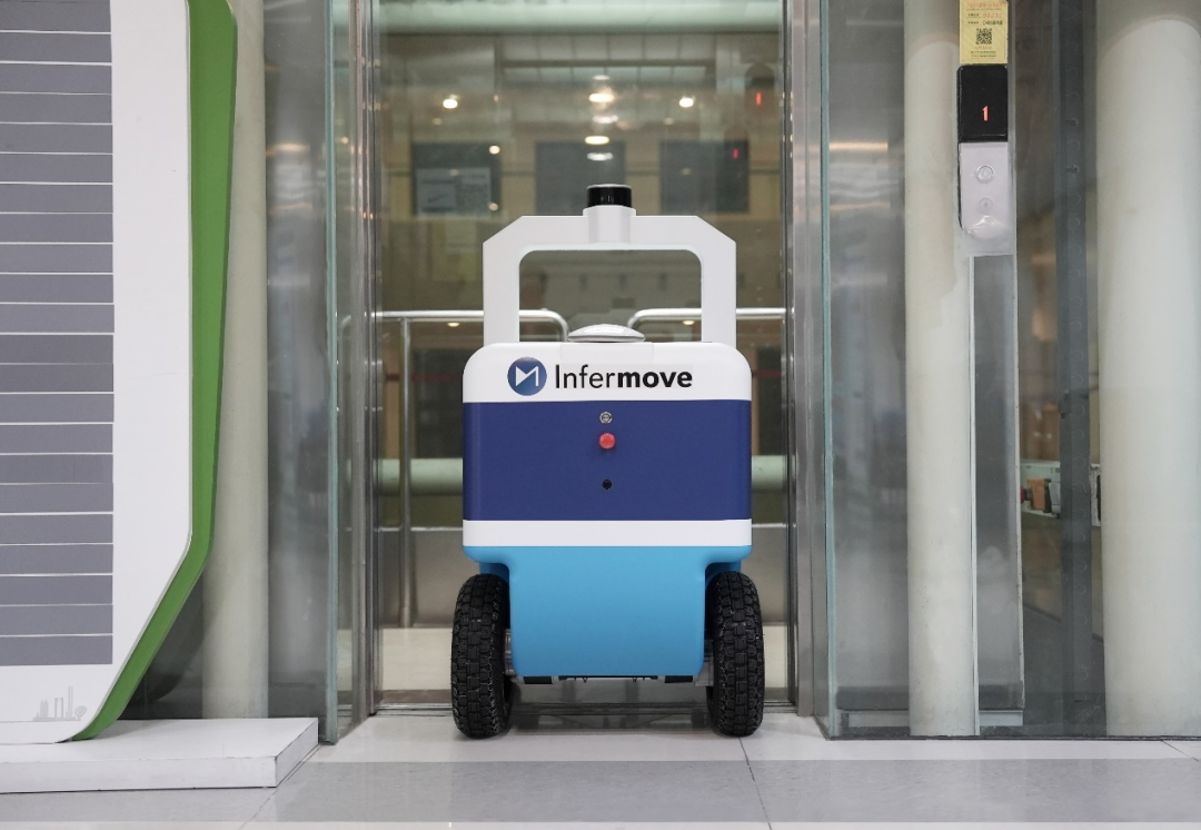 无人配送“小车”驶出写字楼电梯