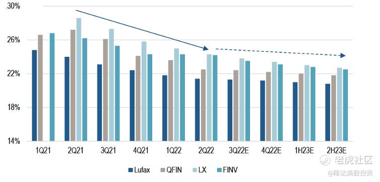 陆金所的差异化路线主要是所谓的小微企业贷款。小微企业的信用其实本质上是老板的信用,这也是受到宏观经济环境的冲击最大,投资者或许应该暂时回避(从低迷的股价里也可见一斑)。而目前来看陆金所是四小强里最可能2022年全年放贷萎缩的公司。