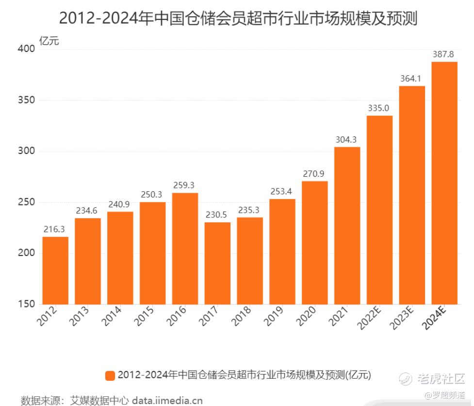 不得不说,自从疫情爆发之后,仓储式会员店在中国日渐火爆,大润发押宝这条赛道自有其道理。艾媒咨询的最新报告就指出,2021年中国仓储式会员超市市场规模为304.3亿元,达到历史巅峰,并预计在2024年达到387.8亿元。