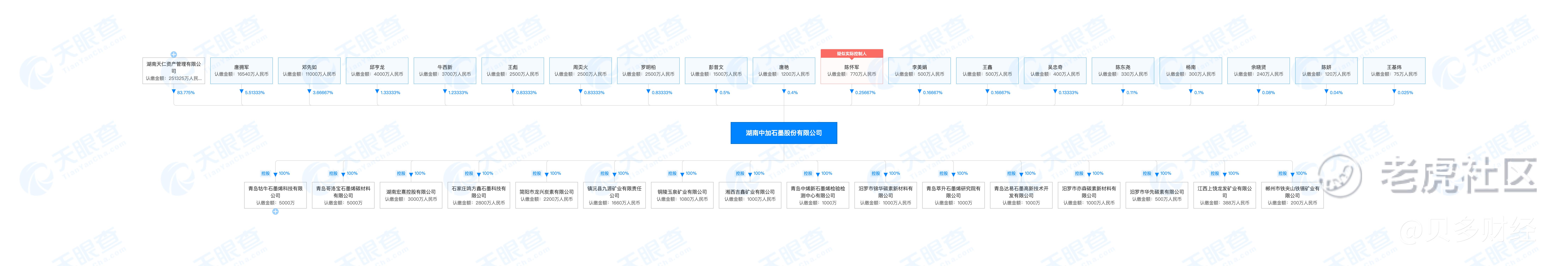 据了解,中加石墨的全称为湖南中加石墨股份有限公司,成立于2004年,前称为长沙同升信息科技有限公司。据天眼查显示,该公司的注册资本为30亿元,法定代表人为林俐,股东包括天仁资产等。