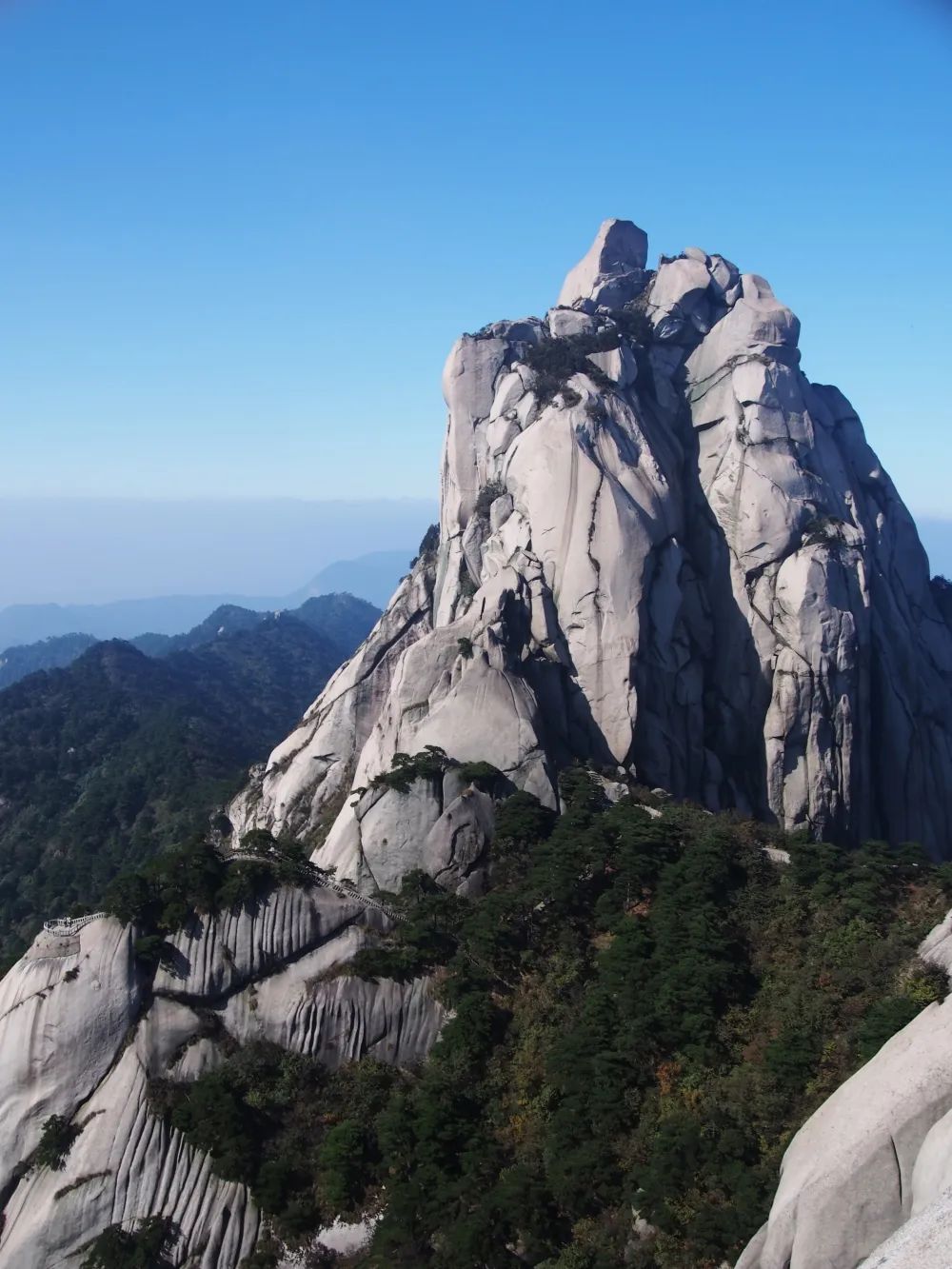 “天柱一峰擎日月,洞门千仞锁云雷”。天柱山像是皖城的卫士,碧天晴空,坚石青松,万壑之中只见“擎天一柱”,默默守卫着这一片清幽宁静。既有奇松怪石、流泉飞瀑,又有峡谷幽洞、险关古寨,还有全国第三大高山人工湖“炼丹湖”,真是目不暇接,美不胜收。后人更有“一柱擎天”、“万岳归宗”的美誉。