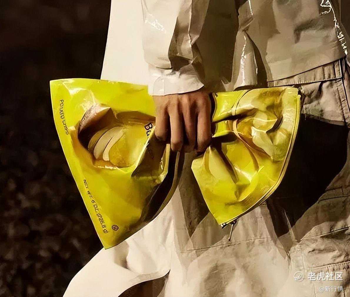 没错,这就是奢侈品牌巴黎世家在2023春夏大秀上推出的一款一比一复刻的“乐事薯片包”,售价1800欧元,折合人民币近13000元,被网友称之为史上最贵“零食袋”。